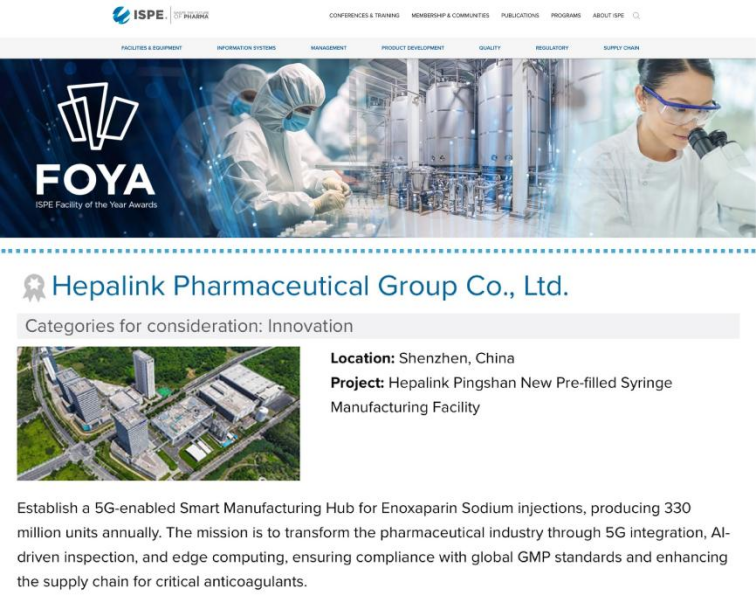 海普瑞坪山新建预灌封制剂智造项目成功入围2026“年度设施奖”(FOYA)